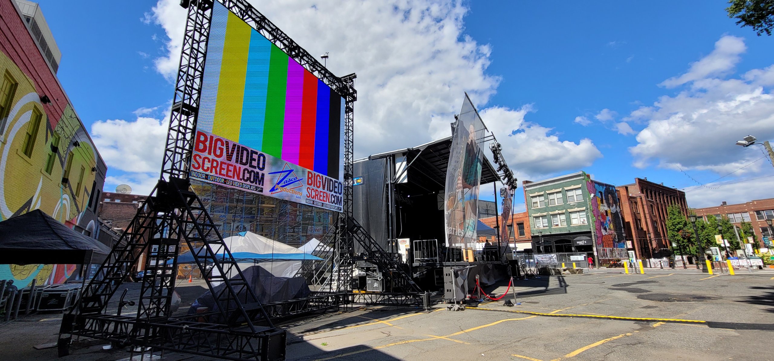 Zasco Productions sponsored and provided a 12′ x 20′ high brightness outdoor LED display for I-MAG (Image Magnification) and ground support structure. In addition, we added a 4′ x 20′ section of LED panels at the bottom of the wall dedicated to displaying a “sponsor loop” banner to give the festival’s top-tier sponsors added visibility.