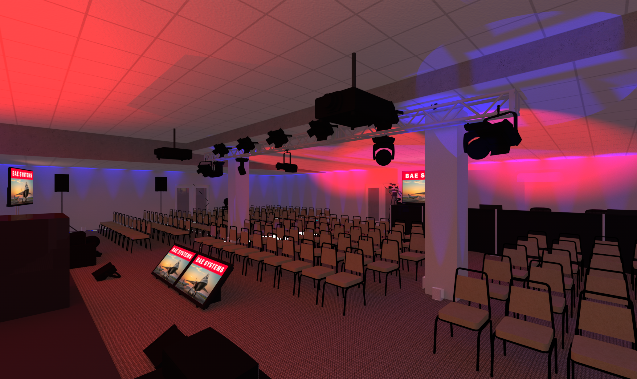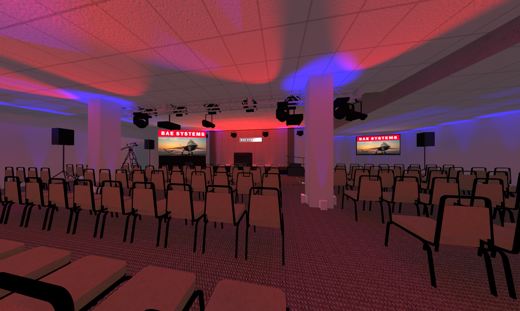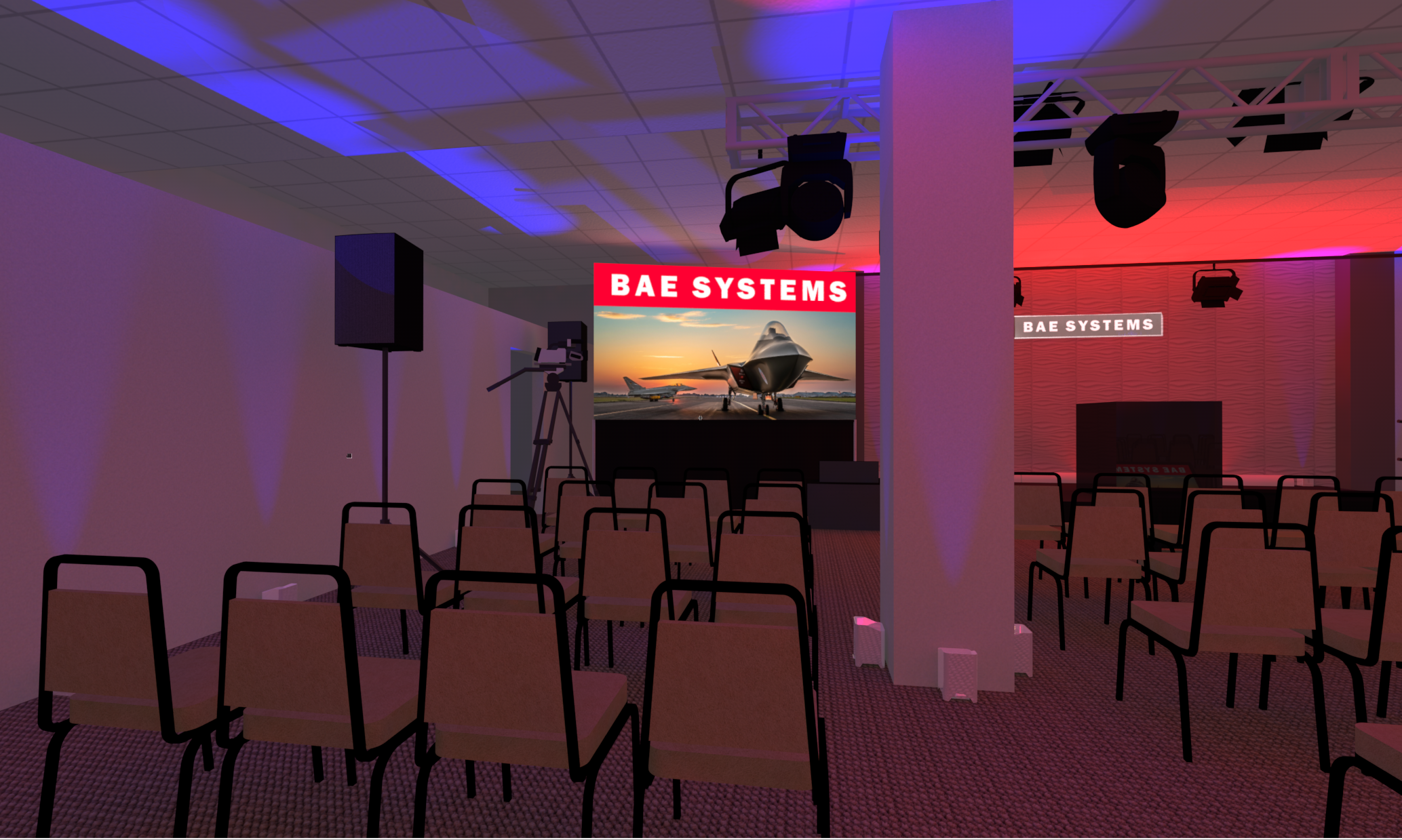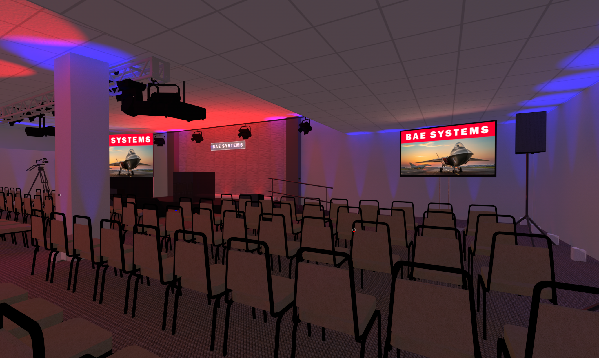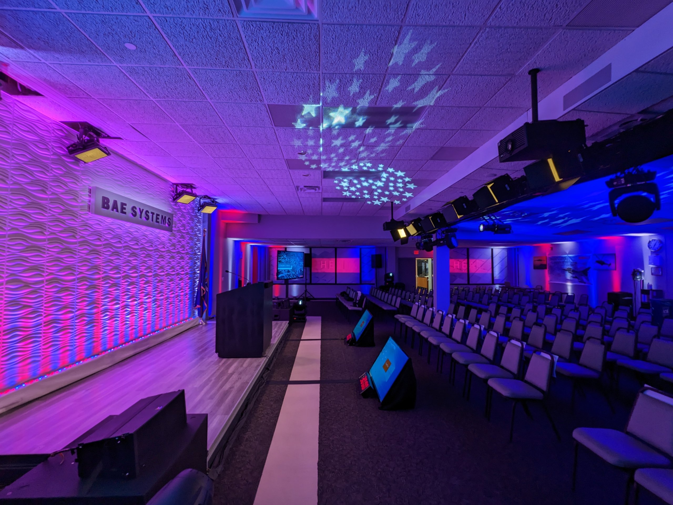 In support of our client Mark Brown from Ovations LLC, and his client BAE Systems Electronic Systems, we provided complete video, audio, lighting, rigging, and production services for for their 2023 President’s Address. The program originated from this client’s facility in Greenlawn NY, where a local audience of about 150 people gathered in an auditorium which we transformed into a hybrid event space / broadcast studio. Thousands of others participated virtually from around the country.