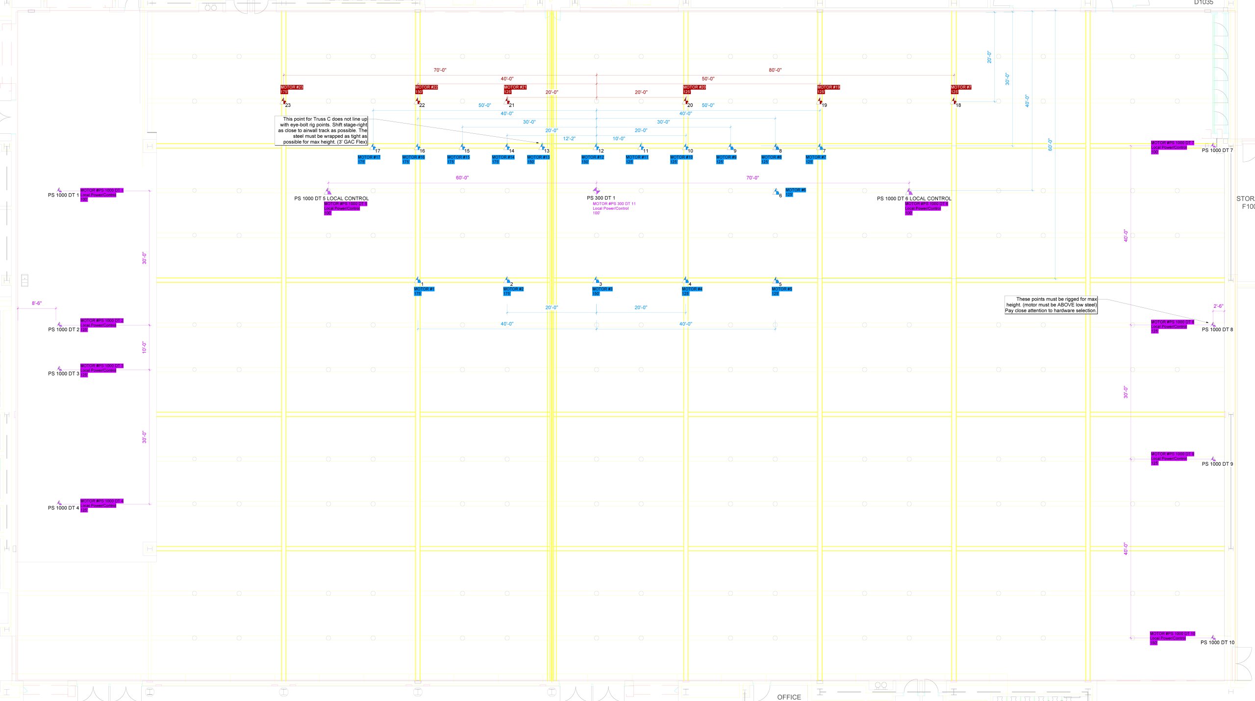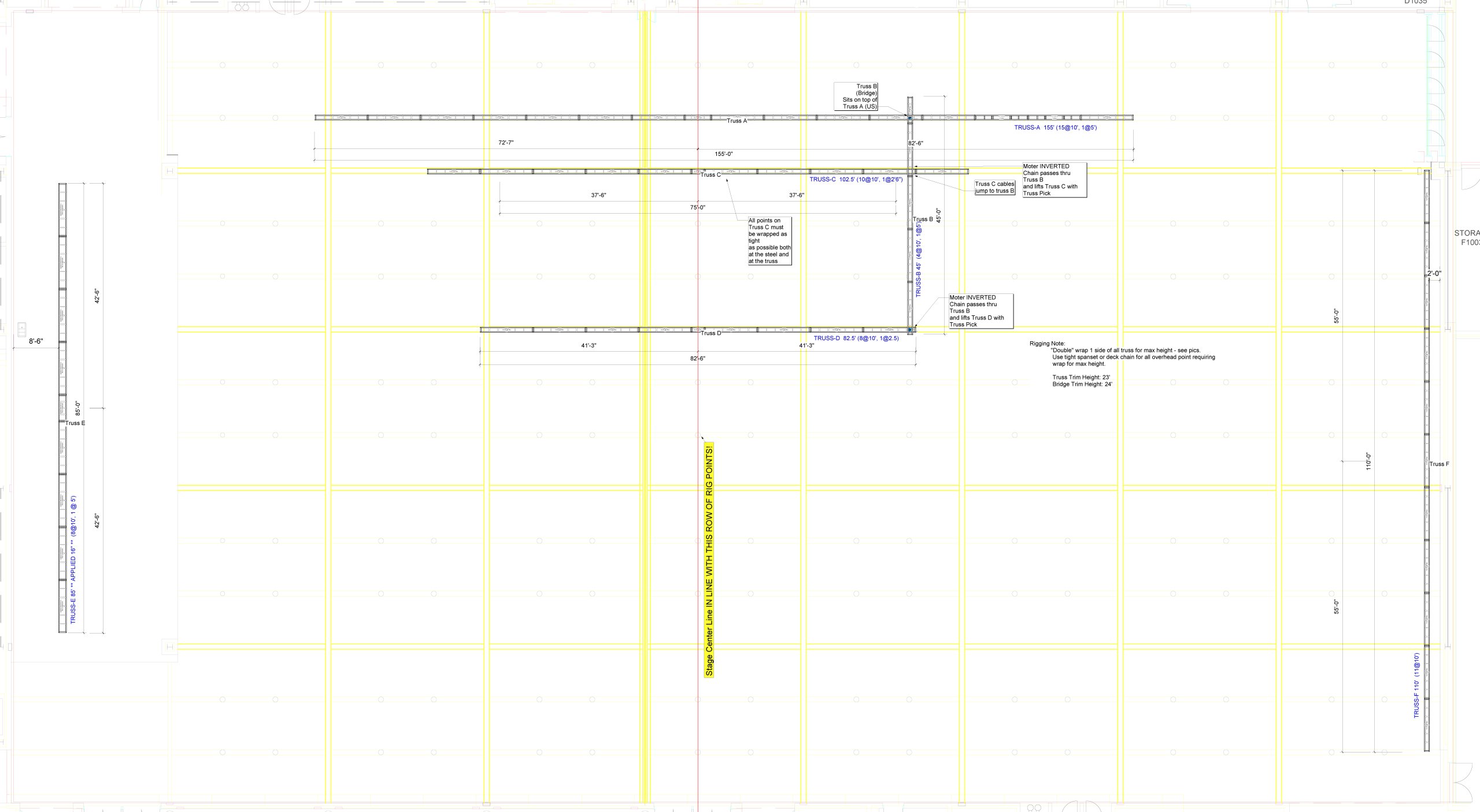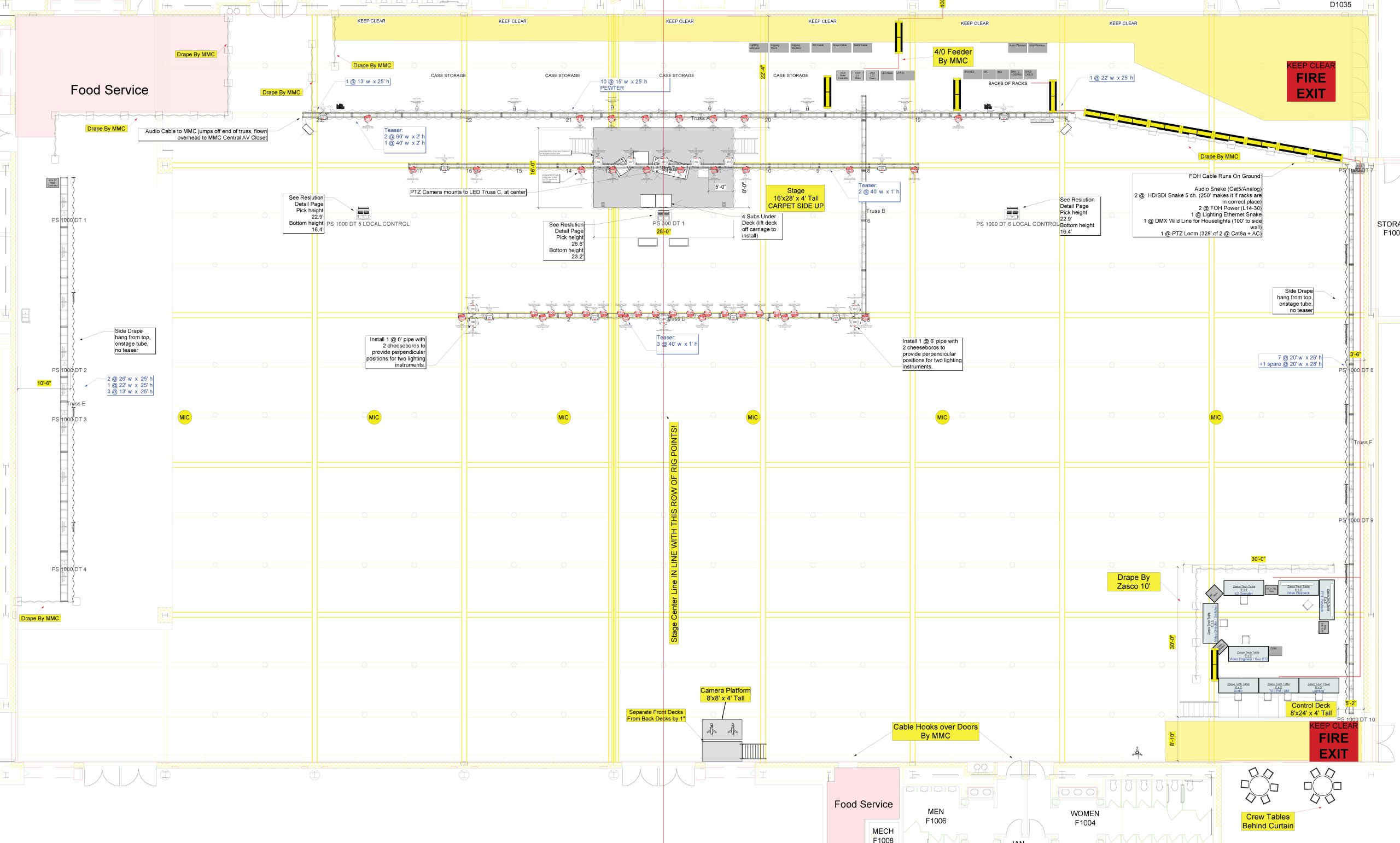 During the pre-production planning process, we developed detailed CAD drawings. These documents provide our team and other stakeholders a detailed package which served as the basis for event planning, technical coordination, and ultimately the the load-in and setup of the event on site.