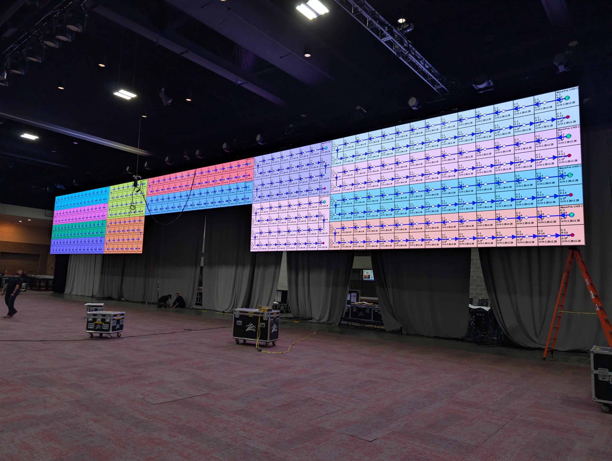- 13′ high x 101′ wide Oracle LED Systems Links 3.9mm indoor LED video wall (432 tiles)