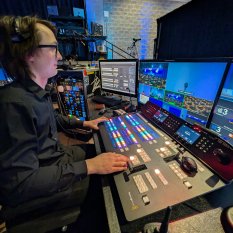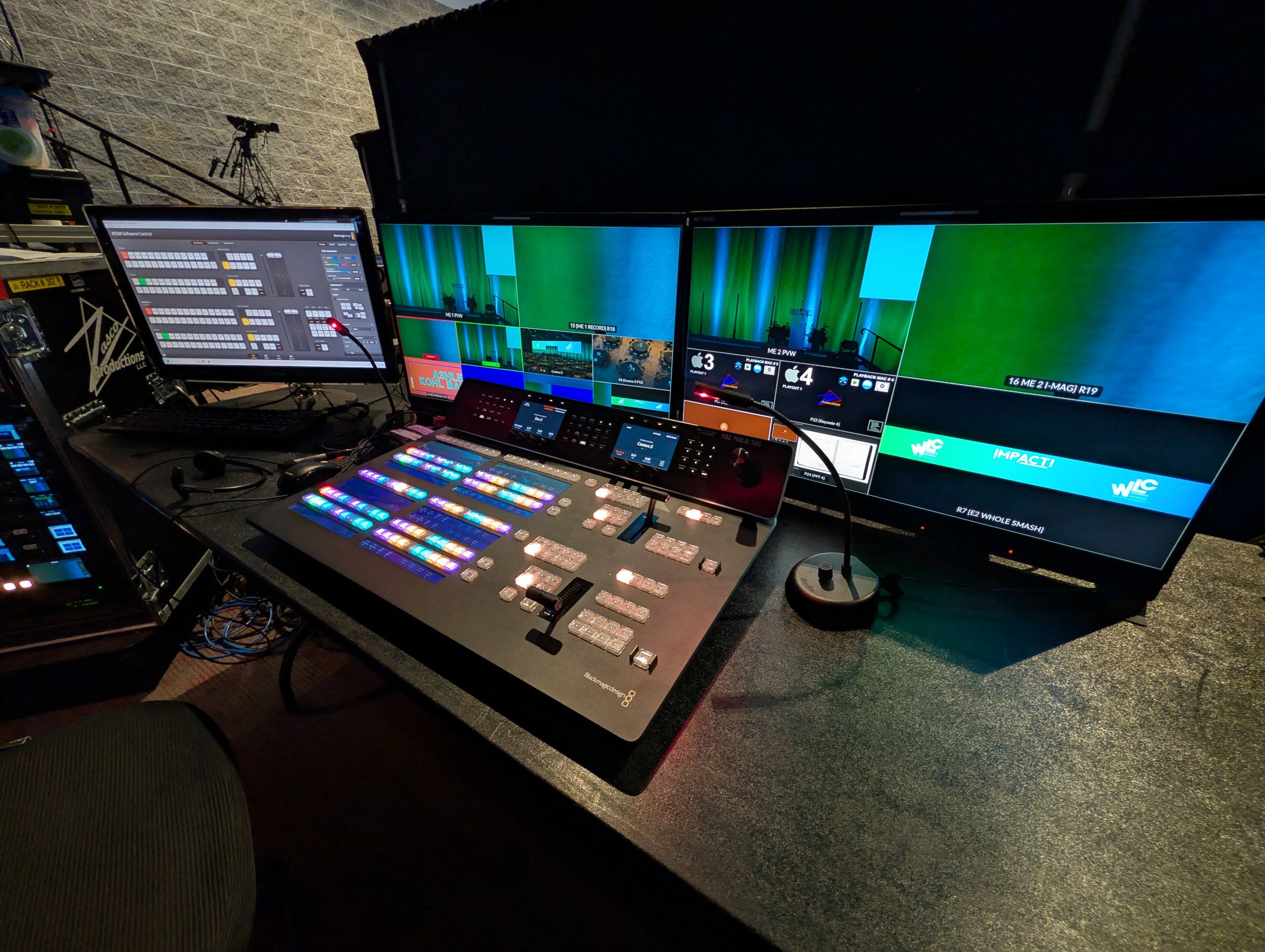 - 3 Blackmagic Studio Camera 6K Pro Cameras with full studio configuration, integrated intercom, rear lens controls, single cable system